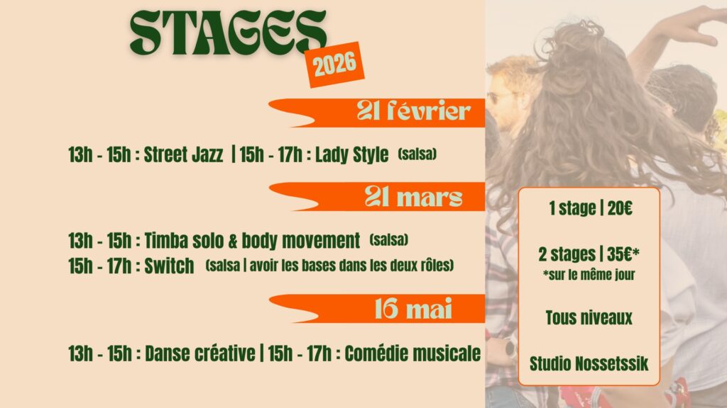 Vous organisez un événement (spectacle de danse, comédie musicale, stage de danse, stages de vacances…) et vous souhaitez le mettre en avant ici ? Contactez-nous !