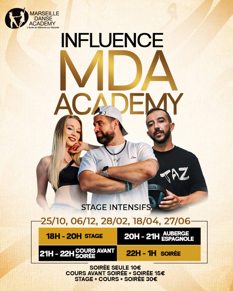 Notre stage commence le Dimanche à 19h30 autour d’un “apéritif tapas” offert pour faire connaissance (dans ce même lieu nous avons la possibilité de suivre un petit cours et de rester ensuite un peu danser si nous le souhaitons). Le lundi nous commençons les cours, plusieurs soirées dansantes et accompagnées prévues durant le séjour.