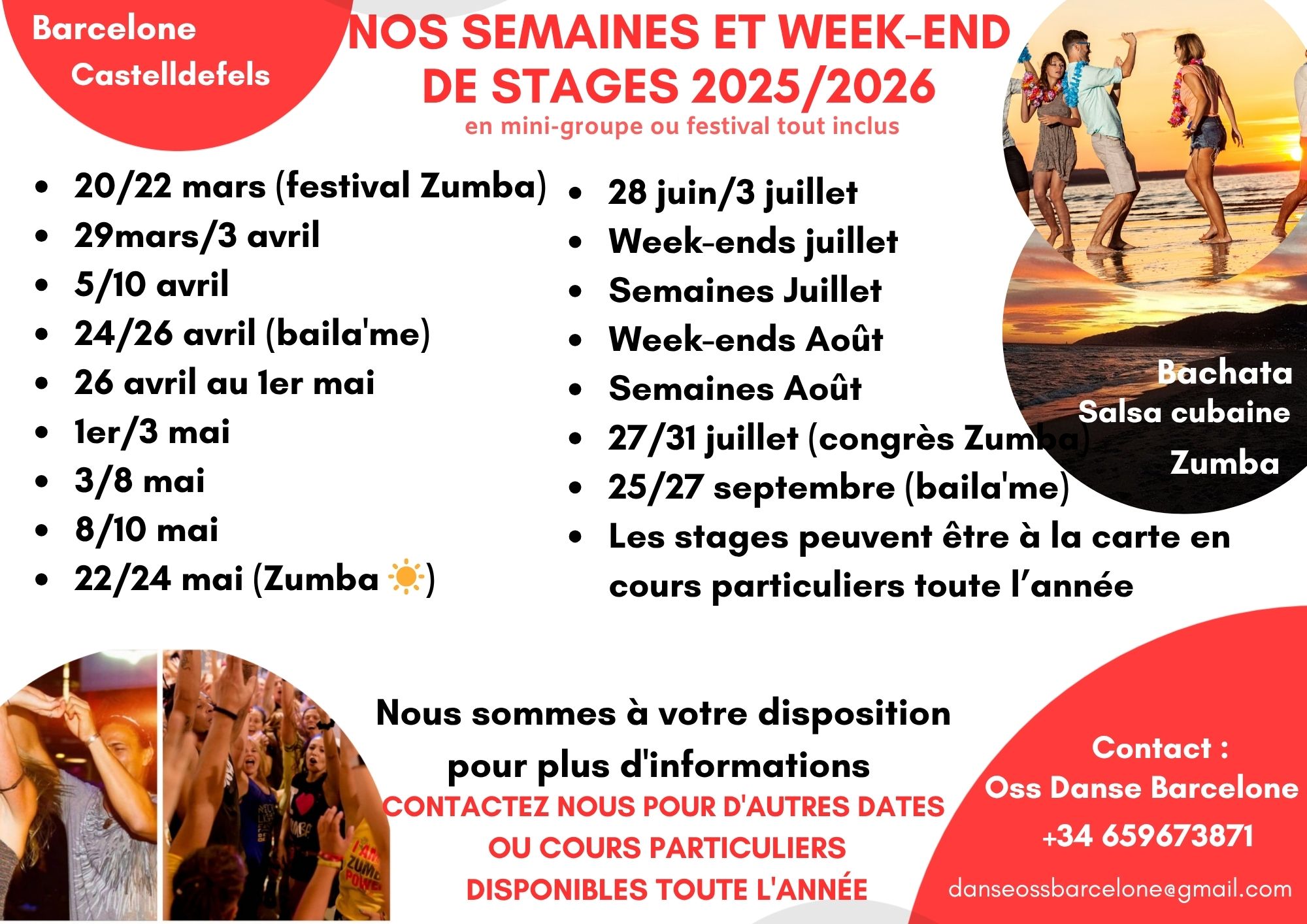 Nous vous attendons, seul(e) ou accompagné(e), au soleil, au bord de mer pour un super stage en mini-groupe de Salsa Cubaine et Bachata