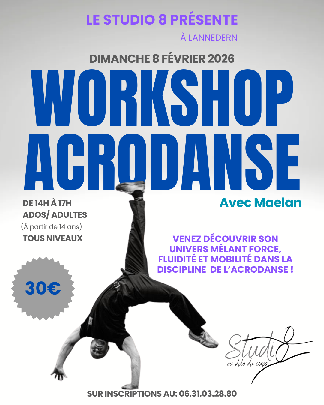Venez découvrir l’univers de Maelan lors d’un stage d’Acrodanse mêlant danse, acrobaties, force, fluidité et immobilité !