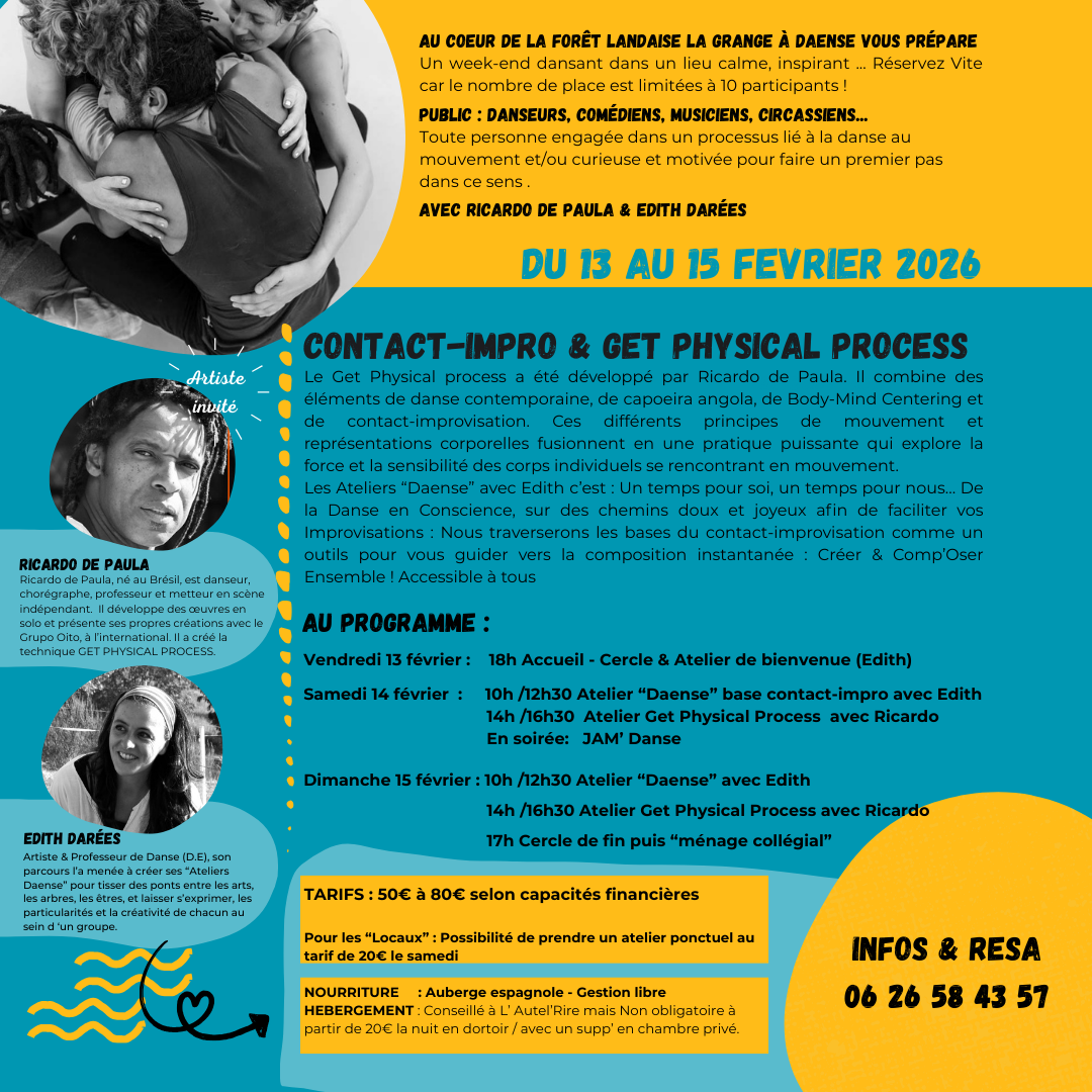 Un week-end dansant dans un lieu calme, inspirant … Réservez Vite car le nombre de place est limitées à 10 participants !