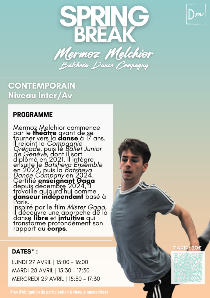 Une masterclasse idéale pour approfondir votre danse tout en étant accompagné par un artiste sensible et bienveillant.
