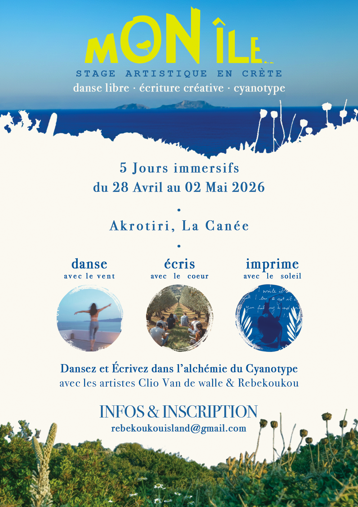 STAGE DE DANSE LIBRE en Grèce, sur l’île de Crète + Ecriture créative & Cyanotype