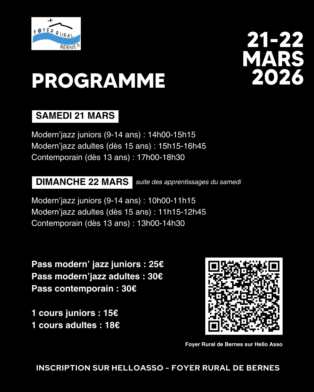 🔗 Inscription obligatoire – Foyer Rural de Bernes sur sur Hello Asso : réserve vite ta place 💃🏻
